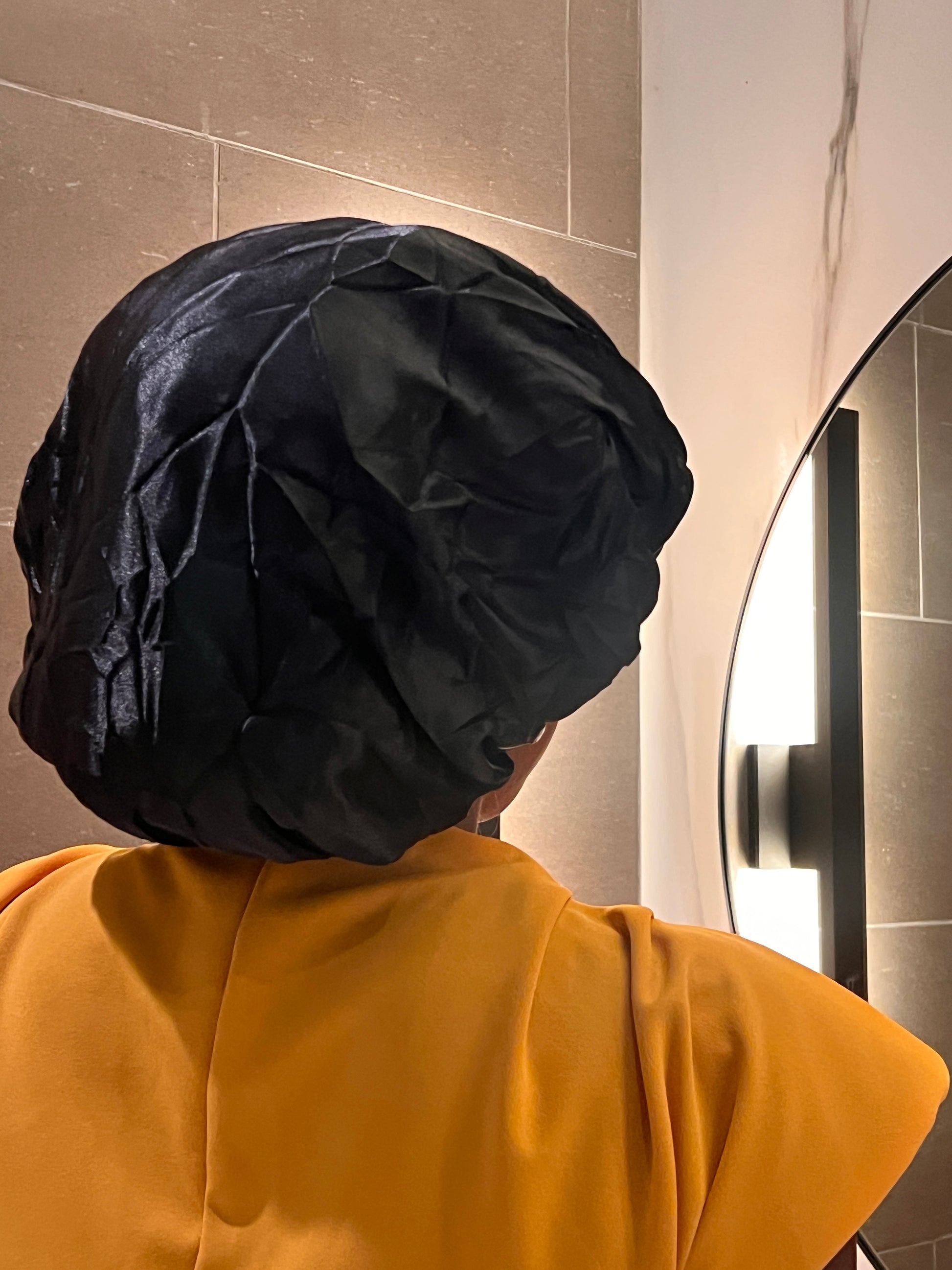 Protect your tresses while you sleep with this deluxe reversible bonnet featuring an African design on the inside that can be sported on the outside. Large enough to fit your curls, braids and locs under this smooth silky material.